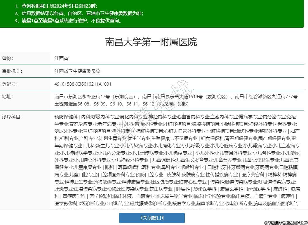 南昌市東湖區(qū)永外正街17號(東湖院區(qū)),南昌市南昌縣東岳大道1519號(象湖院區(qū))、南昌市紅谷灘新區(qū)九江街777號玉櫳苑雅園S6-08、S6-09、S6-10、S6-11、S6-12(九龍湖門診部)