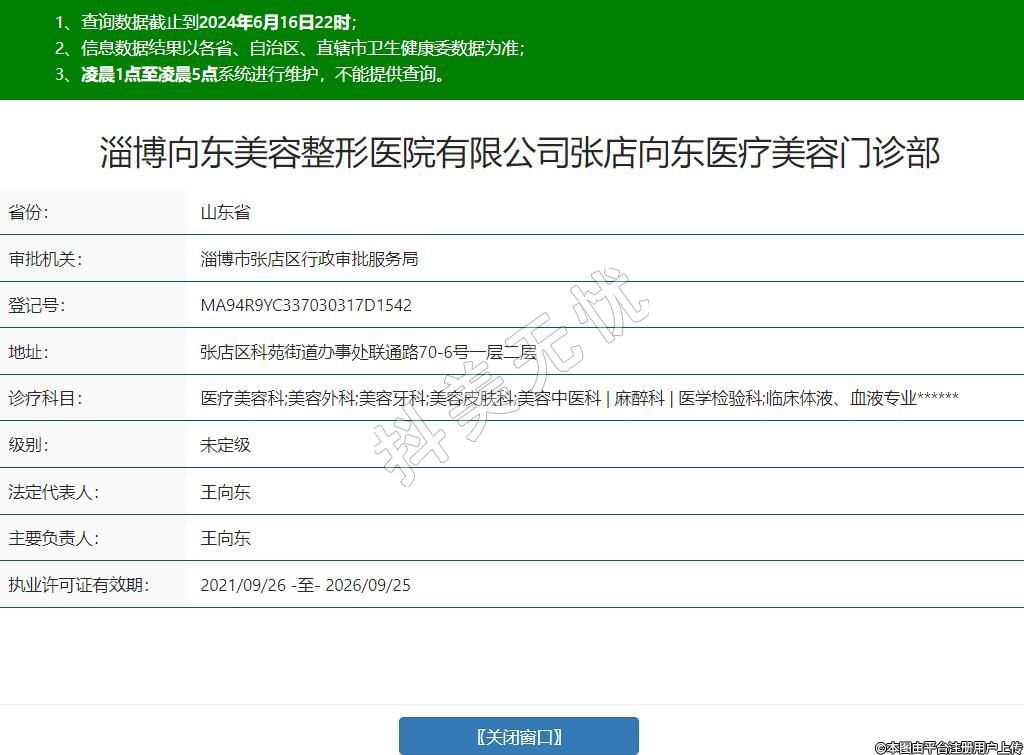 淄博向東美容整形醫(yī)院有限公司張店向東醫(yī)療美容門診部