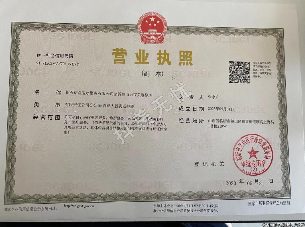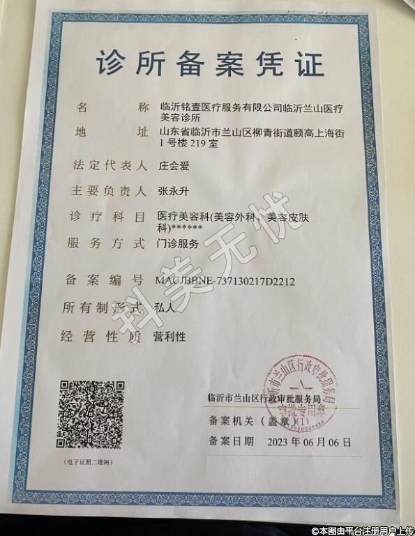 名稱:臨沂銘壹醫(yī)療服務(wù)有限公司臨沂蘭山醫(yī)療美容診所