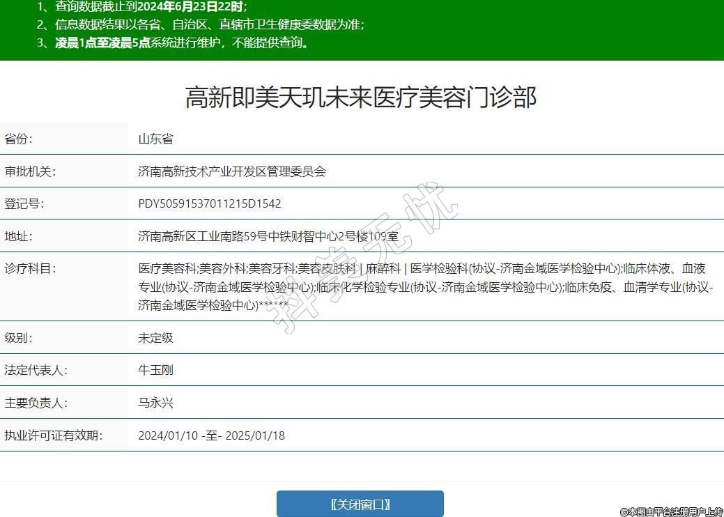 醫(yī)療美容科;美容外科;美容牙科;美容皮膚科 | 麻醉科 | 醫(yī)學(xué)檢驗科(協(xié)議-濟(jì)南金域醫(yī)學(xué)檢驗中心);臨床體液、血液專業(yè)(協(xié)議-濟(jì)南金域醫(yī)學(xué)檢驗中心);臨床化學(xué)檢驗專業(yè)(協(xié)議-濟(jì)南金域醫(yī)學(xué)檢驗中心);臨床免疫、血清學(xué)專業(yè)(協(xié)議-濟(jì)南金域醫(yī)學(xué)檢驗中心)******