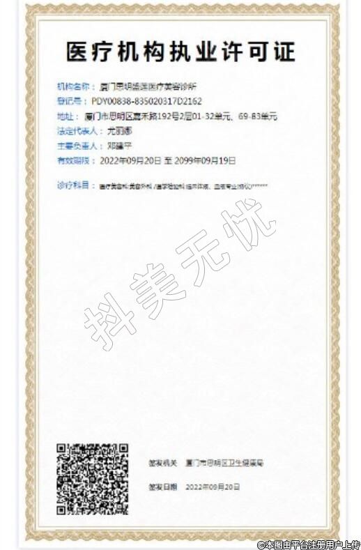 發(fā)證機(jī)關(guān):廈門市思明區(qū)衛(wèi)生健康局