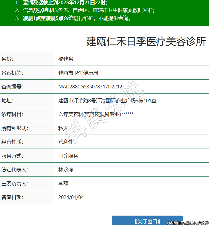 省份:福建省備案機(jī)關(guān):建甌市衛(wèi)生健康局備案編號:MAD288CG535078317D2212地址:建甌市江濱路8號江濱國際商業(yè)廣場9棟101室診療科目:醫(yī)療美容科(美容皮膚科專業(yè))******所有制形式:私人經(jīng)營性質(zhì):營利性服務(wù)方式:門診服務(wù)法定代表人:林永萍主要負(fù)責(zé)人:李靜備案日期:2024/01/04 -