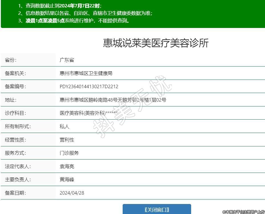 惠城說萊美醫(yī)療美容診所,診療科目:醫(yī)療美容科(美容外科)******