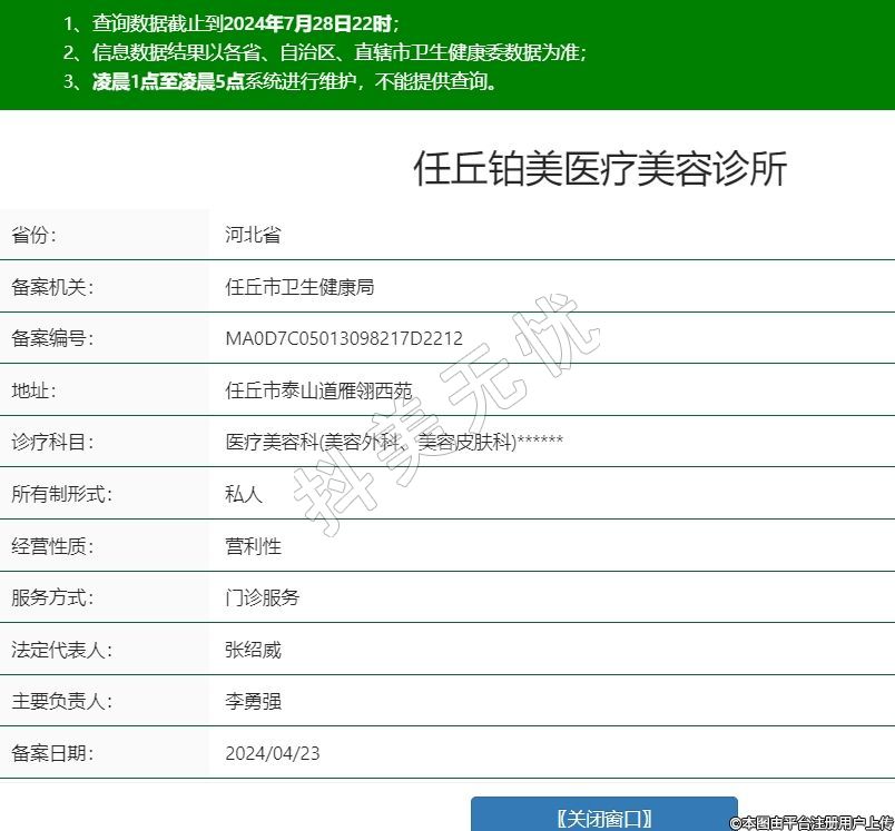 任丘鉑美醫(yī)療美容診所,診療科目:醫(yī)療美容科(美容外科、美容皮膚科)******