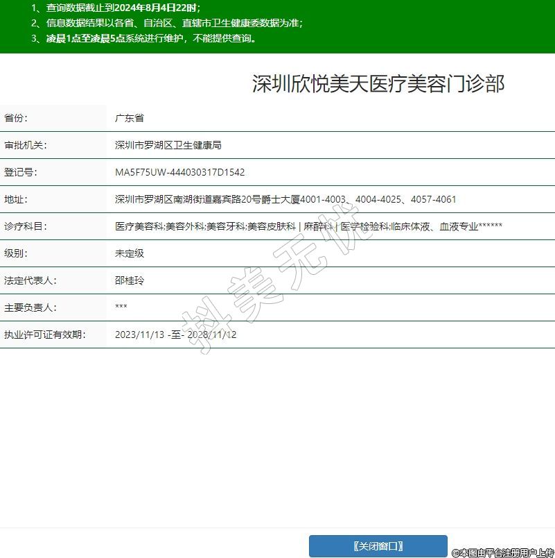 深圳欣悅美天醫(yī)療美容門診部,診療科目:醫(yī)療美容科;美容外科;美容牙科;美容皮膚科 | 麻醉科 | 醫(yī)學檢驗科;臨床體液、血液專業(yè)******