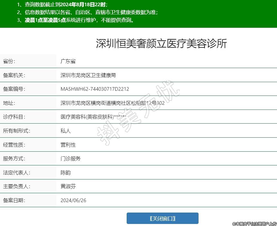 深圳恒美奢顏立醫(yī)療美容診所,診療科目:醫(yī)療美容科(美容皮膚科)******