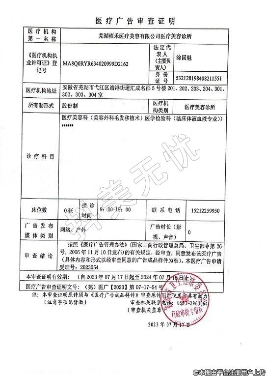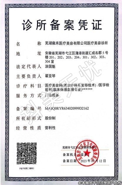 名稱(chēng):蕪湖雍禾醫(yī)療美容有限公司醫(yī)療美容診所