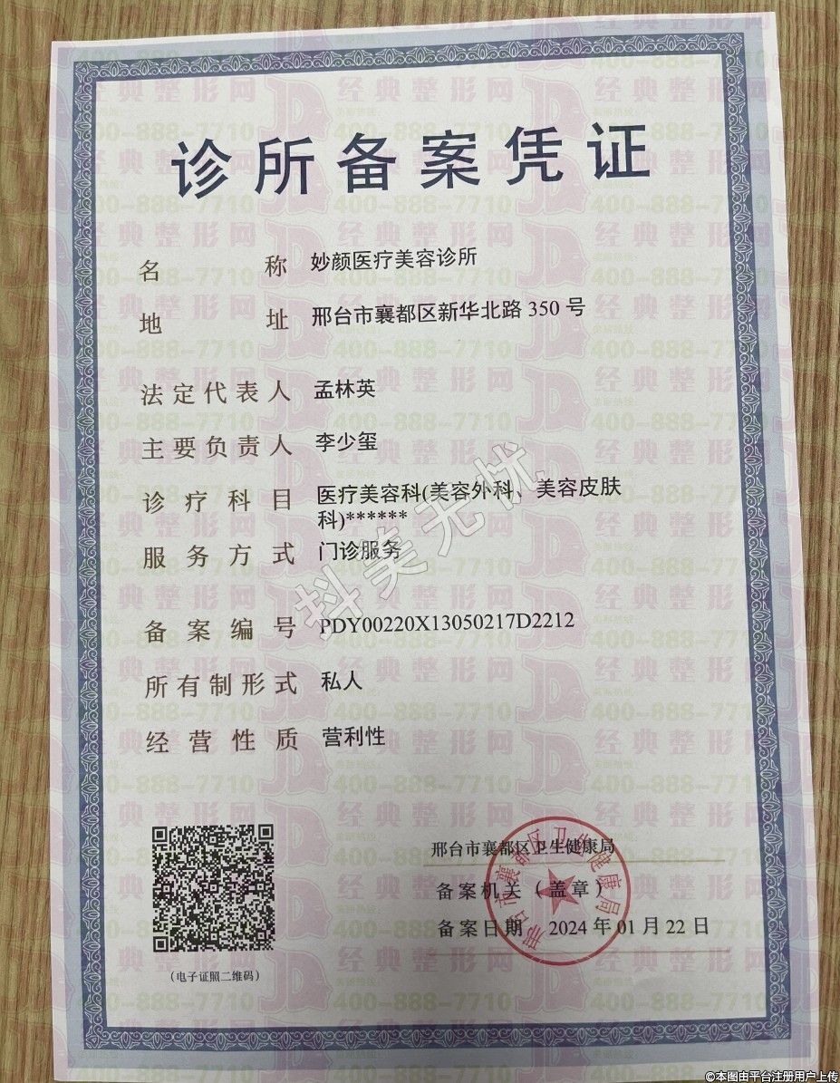 名稱:妙顏醫(yī)療美容診所址 邢臺市襄都區(qū)新華北路350號
