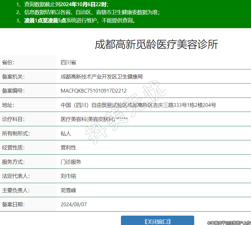 成都高新覓齡醫(yī)療美容診所,診療科目:醫(yī)療美容科(美容皮膚科)******