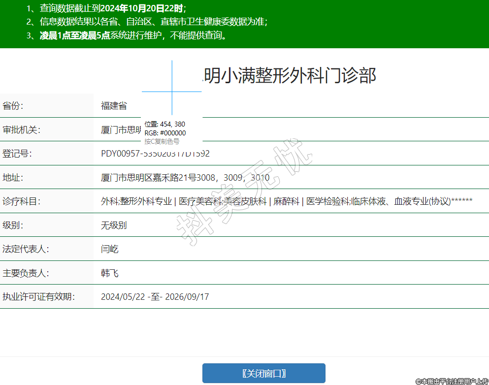 廈門思明小滿整形外科門診部,診療科目:外科;整形外科專業(yè) | 醫(yī)療美容科;美容皮膚科 | 麻醉科 | 醫(yī)學檢驗科;臨床體液、血液專業(yè)(協(xié)議)******