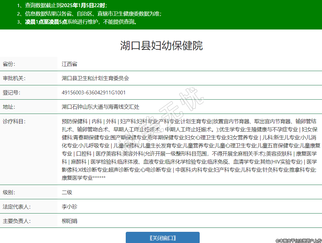 預(yù)防保健科 | 內(nèi)科 | 外科 | 婦產(chǎn)科;婦科專業(yè);產(chǎn)科專業(yè);計劃生育專業(yè)(放置宮內(nèi)節(jié)育器、取出宮內(nèi)節(jié)育器、輸卵管結(jié)扎術(shù)、輸卵管吻合術(shù)、早期人工終止妊娠術(shù)、中期人工終止妊娠術(shù)。);優(yōu)生學(xué)專業(yè);生殖健康與不孕癥專業(yè) | 婦女保健科;青春期保健專業(yè);圍產(chǎn)期保健專業(yè);更年期保健專業(yè);婦女心理衛(wèi)生專業(yè);婦女營養(yǎng)專業(yè) | 兒科;新生兒專業(yè);小兒消化專業(yè);小兒呼吸專業(yè) | 兒童保健科;兒童生長發(fā)育專業(yè);兒童營養(yǎng)專業(yè);兒童心理衛(wèi)生專業(yè);兒童五官保健專業(yè);兒童康復(fù)專業(yè) | 口腔科 | 醫(yī)療美容科;美容外科(允許開展一級整形科目范圍,不得開展全麻相關(guān)手術(shù));美容皮膚科 | 康復(fù)醫(yī)學(xué)科 | 麻醉科 | 醫(yī)學(xué)檢驗科;臨床體液、血液專業(yè);臨床化學(xué)檢驗專業(yè);臨床免疫、血清學(xué)專業(yè);其他(HIV實驗專業(yè)) | 醫(yī)學(xué)影像科;X線診斷專業(yè);超聲診斷專業(yè);心電診斷專業(yè) | 中醫(yī)科;內(nèi)科專業(yè);婦產(chǎn)科專業(yè);兒科專業(yè);針灸科專業(yè);推拿科專業(yè);康復(fù)醫(yī)學(xué)專業(yè)******