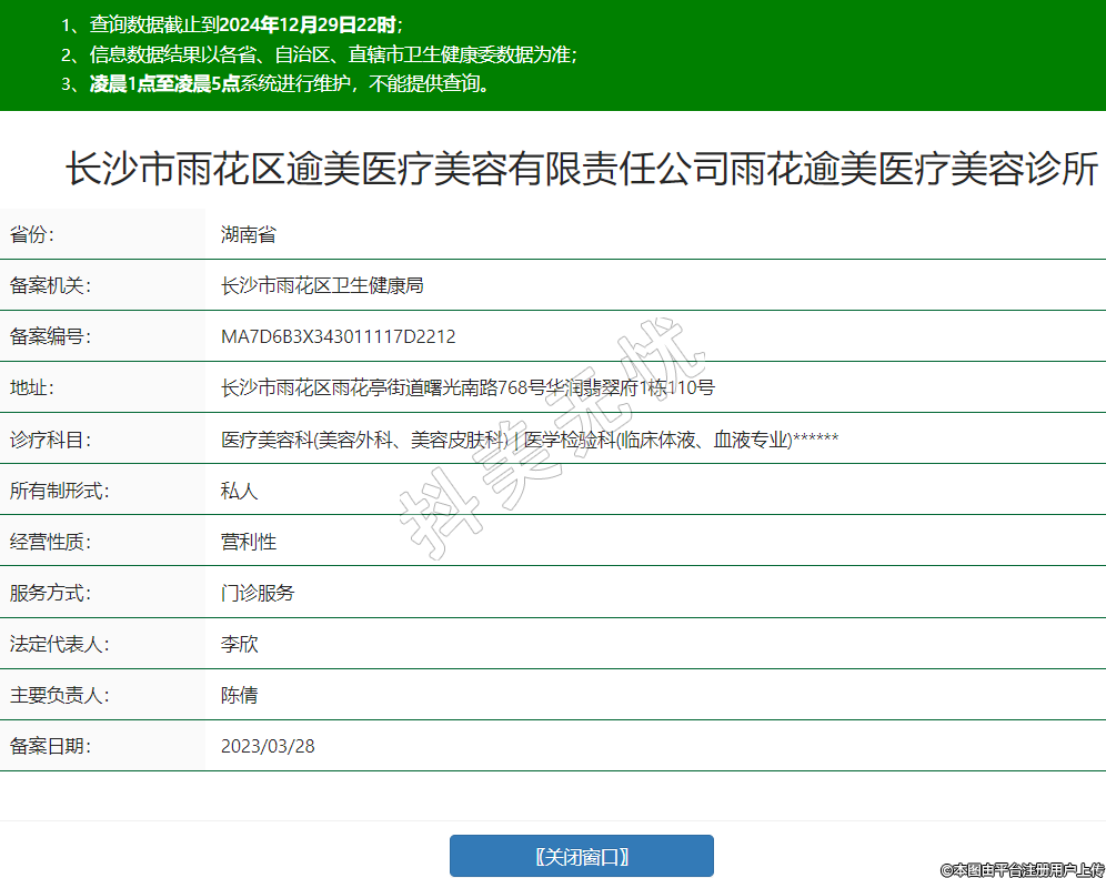 長(zhǎng)沙市雨花區(qū)逾美醫(yī)療美容有限責(zé)任公司雨花逾美醫(yī)療美容診所