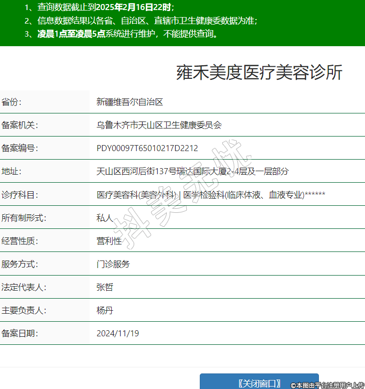 雍禾美度醫(yī)療美容診所,診療科目:醫(yī)療美容科(美容外科) | 醫(yī)學(xué)檢驗科(臨床體液、血液專業(yè))******