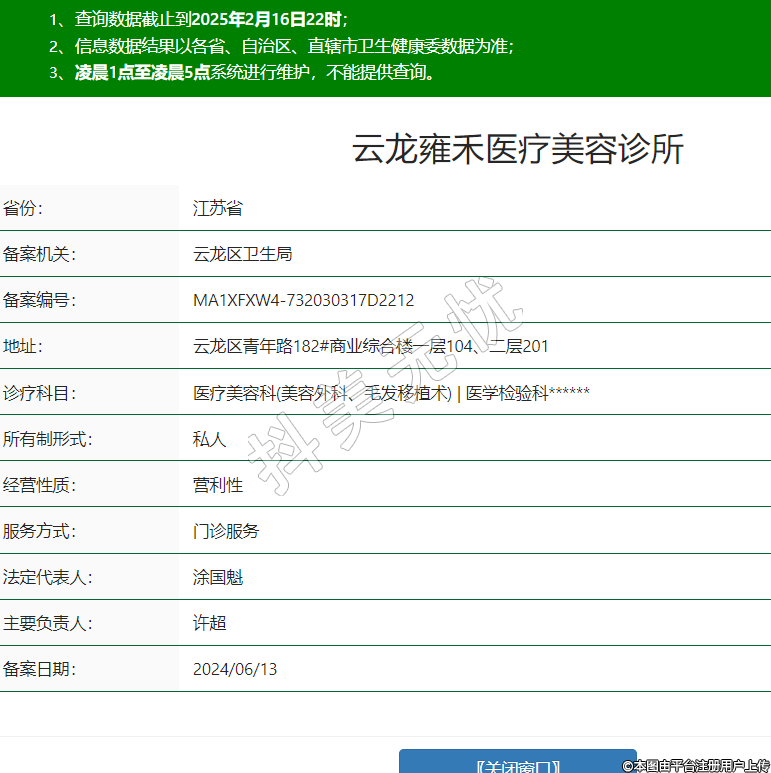 云龍雍禾醫(yī)療美容診所,診療科目:醫(yī)療美容科(美容外科、毛發(fā)移植術(shù)) | 醫(yī)學(xué)檢驗科******