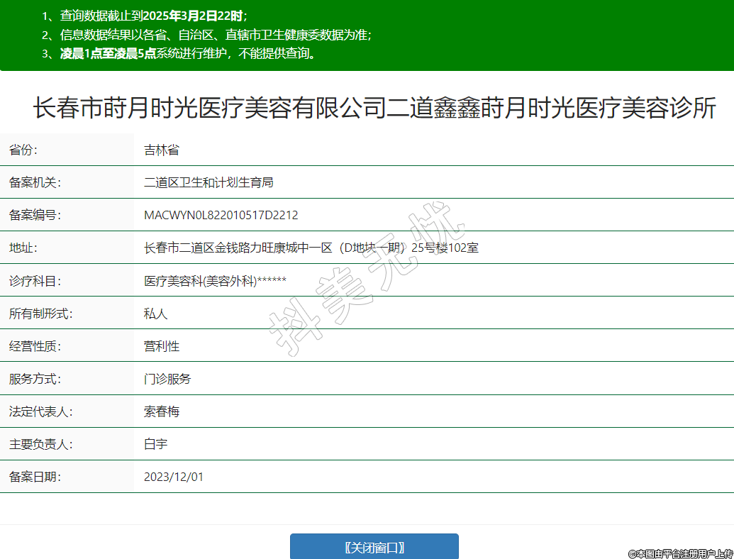 長春市蒔月時光醫(yī)療美容有限公司二道鑫鑫蒔月時光醫(yī)療美容診所