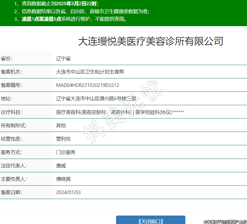 大連縵悅美醫(yī)療美容診所有限公司,診療科目:醫(yī)療美容科(美容皮膚科、美容外科) | 醫(yī)學(xué)檢驗(yàn)科(協(xié)議)******