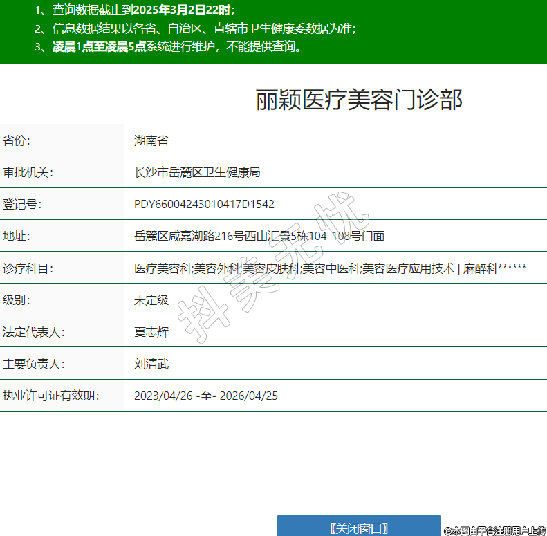 麗穎醫(yī)療美容門診部,診療科目:醫(yī)療美容科;美容外科;美容皮膚科;美容中醫(yī)科;美容醫(yī)療應用技術 | 麻醉科******