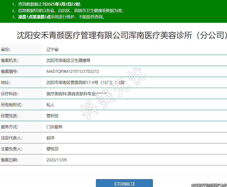 沈陽安禾青顏醫(yī)療管理有限公司渾南醫(yī)療美容診所(分公司)