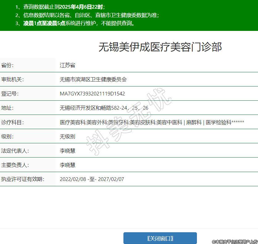 無錫美伊成醫(yī)療美容,診療科目:醫(yī)療美容科;美容外科;美容牙科;美容皮膚科;美容中醫(yī)科 | 麻醉科 | 醫(yī)學檢驗科******