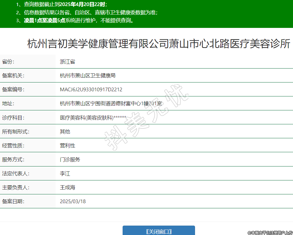 杭州言初美學(xué)健康管理有限公司蕭山市心北路醫(yī)療美容診所