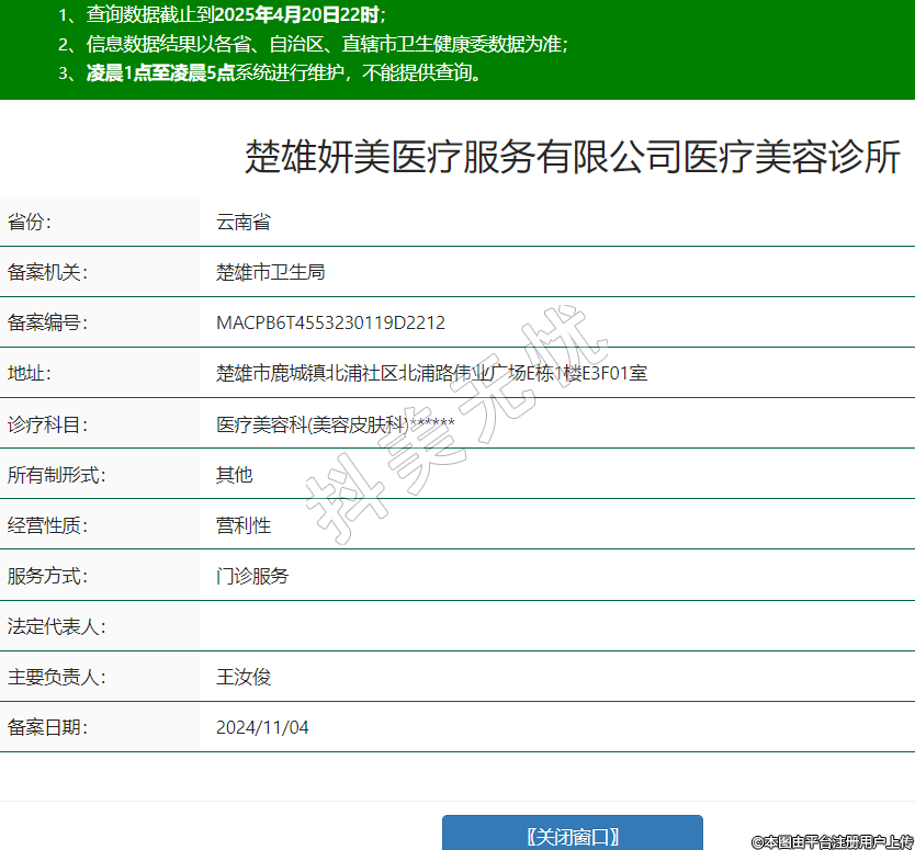 楚雄妍美醫(yī)療服務有限公司醫(yī)療美容診所,診療科目:醫(yī)療美容科(美容皮膚科)******