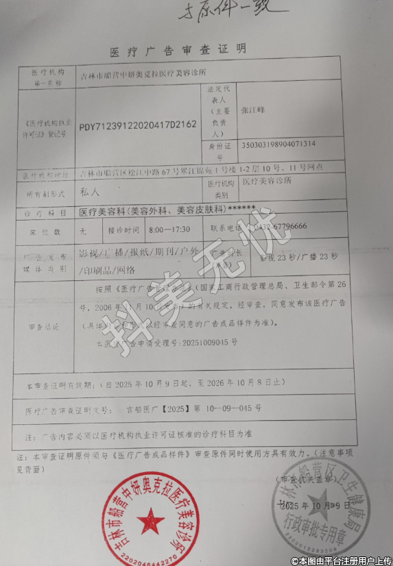 名稱:吉林市船營中妍奧克拉醫(yī)療美容診所