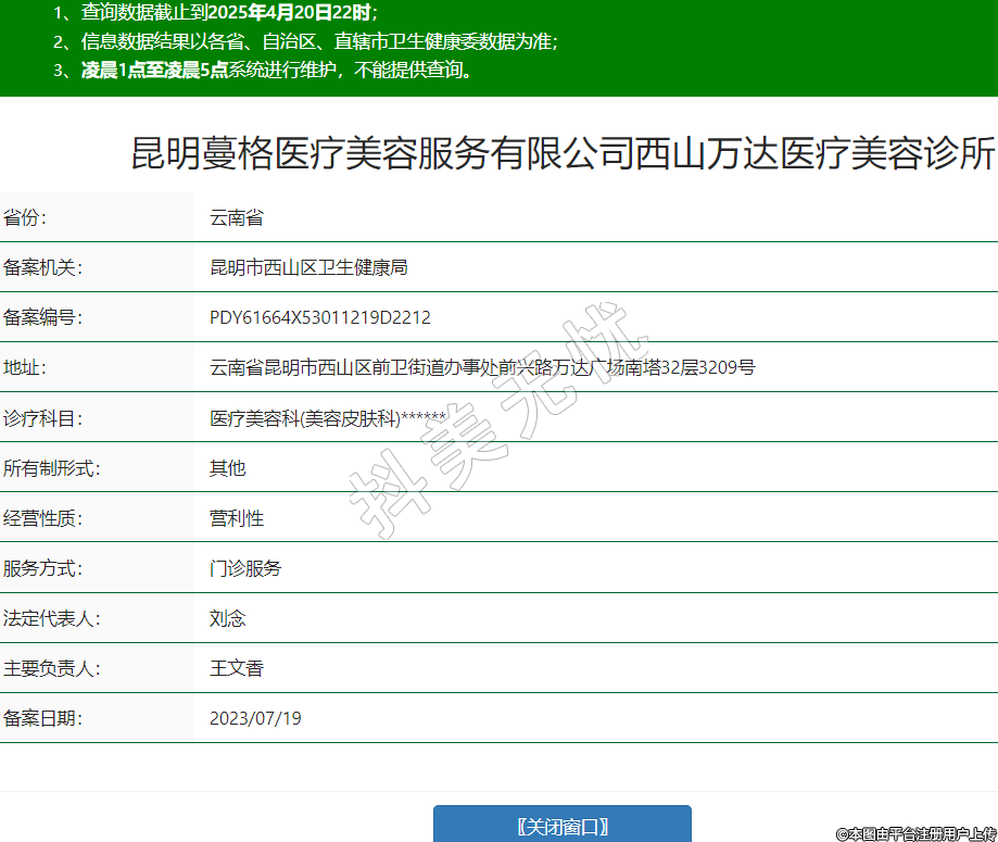 昆明蔓格醫(yī)療美容服務(wù)有限公司西山萬達(dá)醫(yī)療美容診所