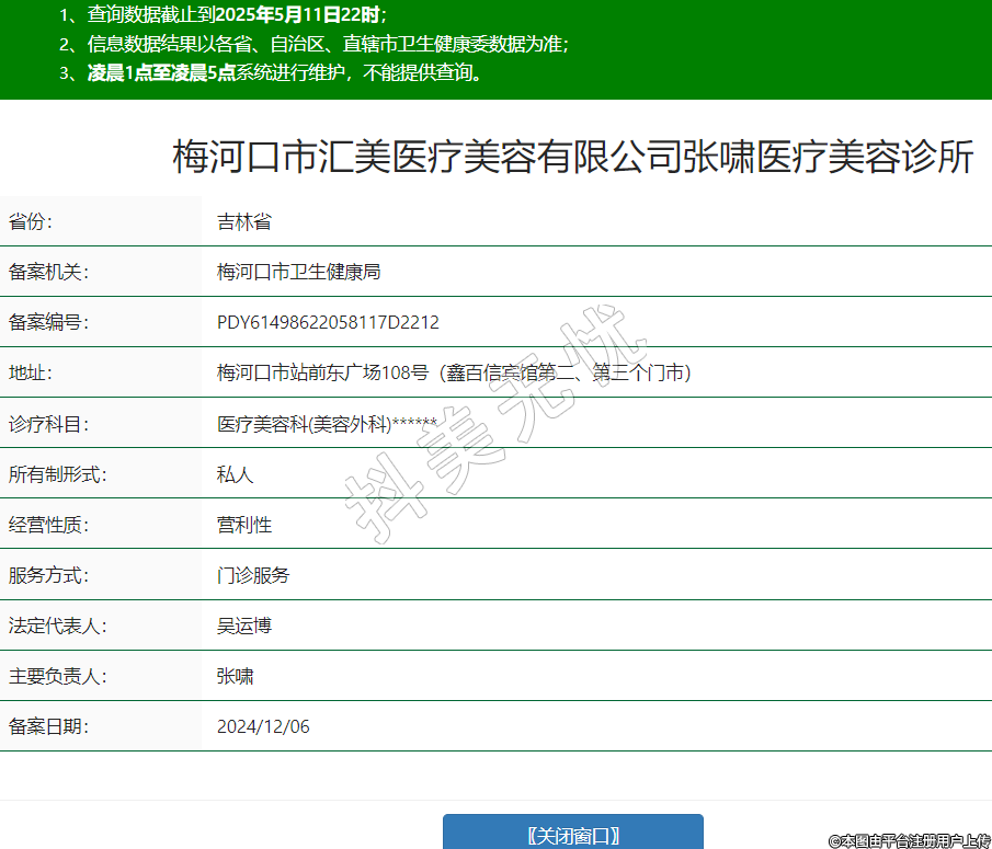 梅河口市匯美醫(yī)療美容有限公司張嘯醫(yī)療美容診所