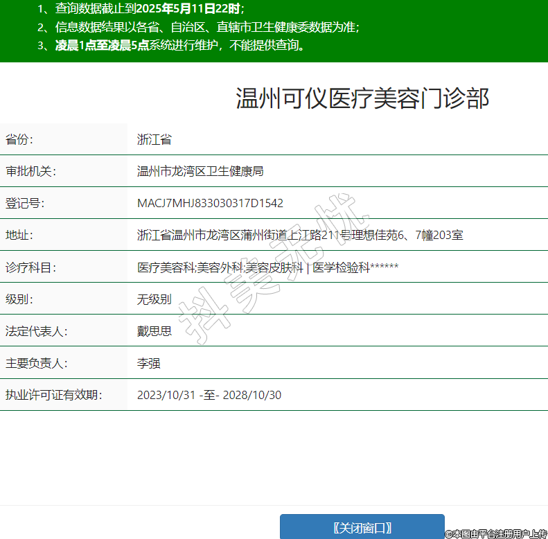 省份:浙江省審批機(jī)關(guān):溫州市龍灣區(qū)衛(wèi)生健康局登記號(hào):MACJ7MHJ833030317D1542地址:浙江省溫州市龍灣區(qū)蒲州街道上江路211號(hào)理想佳苑6、7幢203室診療科目:醫(yī)療美容科;美容外科;美容皮膚科 | 醫(yī)學(xué)檢驗(yàn)科******級(jí)別:無(wú)級(jí)別法定代表人:戴思思主要負(fù)責(zé)人:李強(qiáng)執(zhí)業(yè)許可證有效期:2023/10/31 -至- 2028/10/30 -
