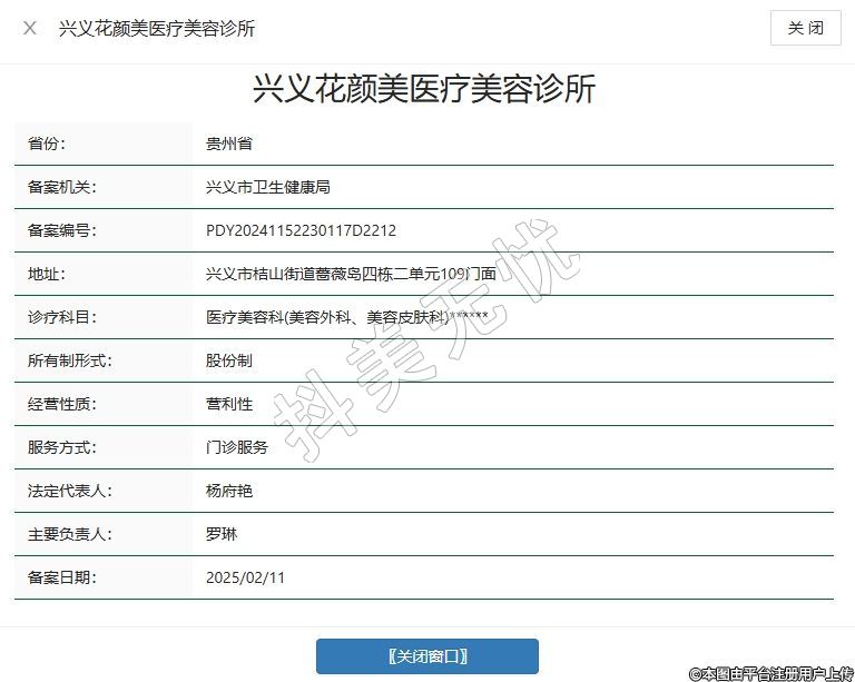興義花顏美醫(yī)療美容診所成立于2024年,坐落于貴州省黔西南布依族苗族自治州興義市桔山街道薔薇島四棟二單元109門面,毗鄰生態(tài)景觀帶。機構以分層肌膚管理、定制化抗衰及五官美學優(yōu)化為主營方向,配備智能影像檢測儀與多源光能設備,結合動態(tài)數(shù)據(jù)追蹤技術,由臨床經(jīng)驗豐富的醫(yī)師團隊制定個性化方案。