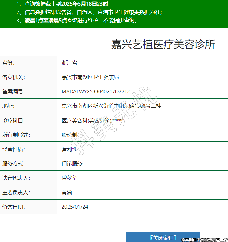 省份:浙江省備案機(jī)關(guān):嘉興市南湖區(qū)衛(wèi)生健康局備案編號(hào):MADAFWYX533040217D2212地址:嘉興市南湖區(qū)新興街道中山東路1308號(hào)二樓診療科目:醫(yī)療美容科(美容外科)******所有制形式:股份制經(jīng)營(yíng)性質(zhì):營(yíng)利性服務(wù)方式:門(mén)診服務(wù)法定代表人:曾秋華主要負(fù)責(zé)人:黃瀟備案日期:2025/01/24 -