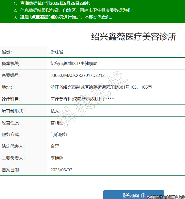 省份:浙江省備案機(jī)關(guān):紹興市越城區(qū)衛(wèi)生健康局備案編號(hào):330602MACKXR27017D2212地址:浙江省紹興市越城區(qū)迪蕩街道云東路381號(hào)105、106室診療科目:醫(yī)療美容科(僅限美容皮膚科)******所有制形式:私人經(jīng)營(yíng)性質(zhì):營(yíng)利性服務(wù)方式:門診服務(wù)法定代表人:金奔主要負(fù)責(zé)人:李艷桃備案日期:2025/05/07 -