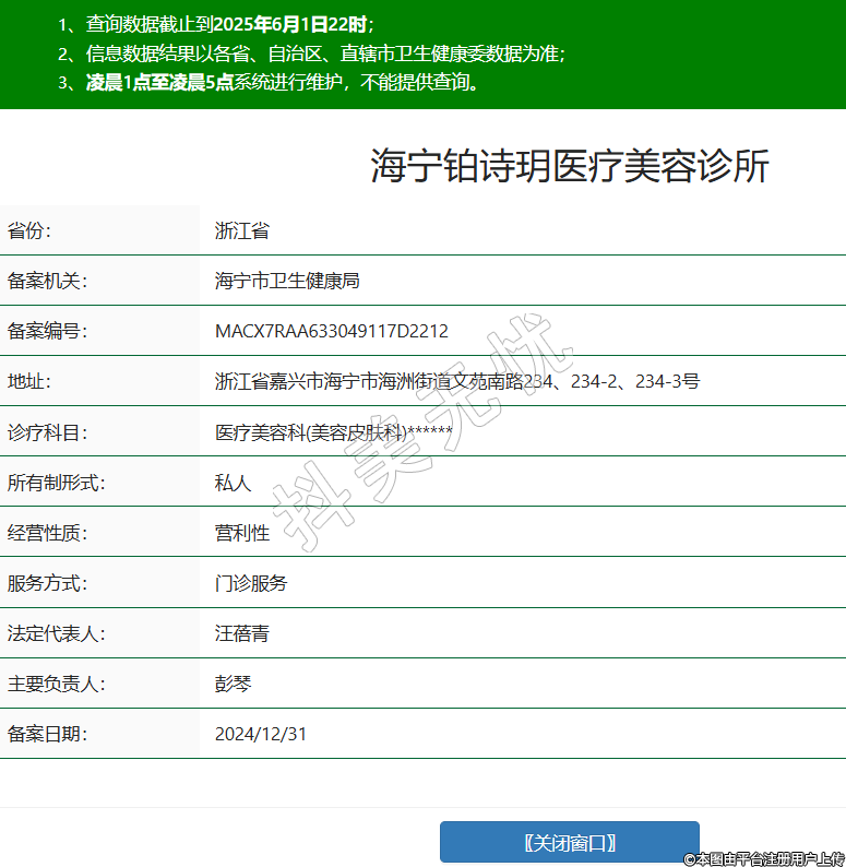 省份:浙江省備案機(jī)關(guān):海寧市衛(wèi)生健康局備案編號(hào):MACX7RAA633049117D2212地址:浙江省嘉興市海寧市海洲街道文苑南路234、234-2、234-3號(hào)診療科目:醫(yī)療美容科(美容皮膚科)******所有制形式:私人經(jīng)營(yíng)性質(zhì):營(yíng)利性服務(wù)方式:門診服務(wù)法定代表人:汪蓓青主要負(fù)責(zé)人:彭琴備案日期:2024/12/31 -