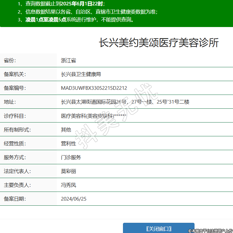 省份:浙江省備案機(jī)關(guān):長興縣衛(wèi)生健康局備案編號:MAD3UWFBX33052215D2212地址:長興縣太湖街道國際花園26號,27號一樓、25號˜31號二樓診療科目:醫(yī)療美容科(美容皮膚科)******所有制形式:其他經(jīng)營性質(zhì):營利性服務(wù)方式:門診服務(wù)法定代表人:莫彩麗主要負(fù)責(zé)人:馮秀鳳備案日期:2024/06/25 -