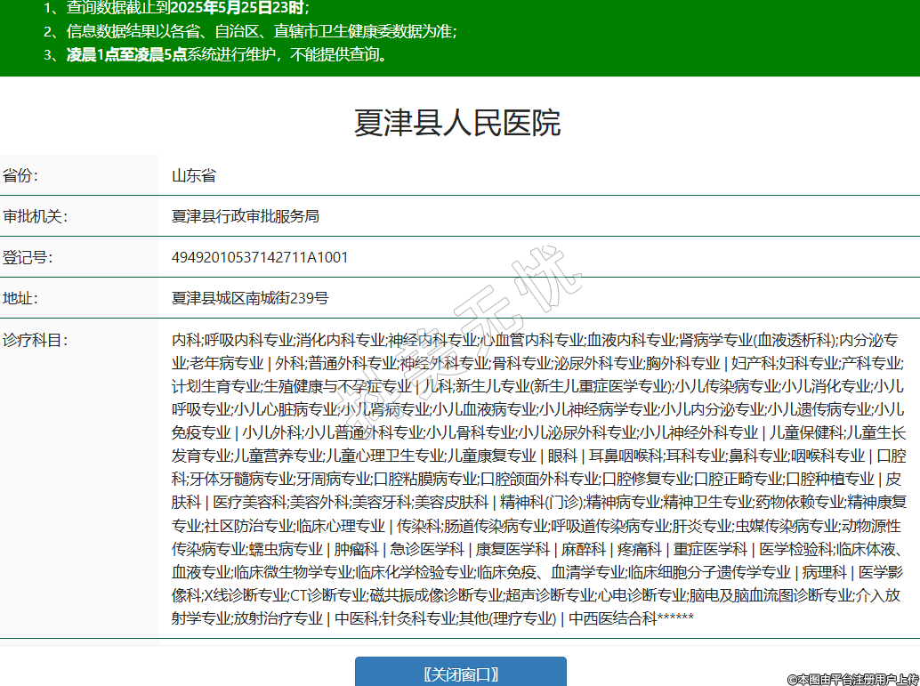 省份:山東省審批機(jī)關(guān):夏津縣行政審批服務(wù)局登記號:49492010537142711A1001地址:夏津縣城區(qū)南城街239號診療科目:內(nèi)科;呼吸內(nèi)科專業(yè);消化內(nèi)科專業(yè);神經(jīng)內(nèi)科專業(yè);心血管內(nèi)科專業(yè);血液內(nèi)科專業(yè);腎病學(xué)專業(yè)(血液透析科);內(nèi)分泌專業(yè);老年病專業(yè) | 外科;普通外科專業(yè);神經(jīng)外科專業(yè);骨科專業(yè);泌尿外科專業(yè);胸外科專業(yè) | 婦產(chǎn)科;婦科專業(yè);產(chǎn)科專業(yè);計(jì)劃生育專業(yè);生殖健康與不孕癥專業(yè) | 兒科;新生兒專業(yè)(新生兒重癥醫(yī)學(xué)專業(yè));小兒傳染病專業(yè);小兒消化專業(yè);小兒呼吸專業(yè);小兒心臟病專業(yè);小兒腎病專業(yè);小兒血液病專業(yè);小兒神經(jīng)病學(xué)專業(yè);小兒內(nèi)分泌專業(yè);小兒遺傳病專業(yè);小兒免疫專業(yè) | 小兒外科;小兒普通外科專業(yè);小兒骨科專業(yè);小兒泌尿外科專業(yè);小兒神經(jīng)外科專業(yè) | 兒童保健科;兒童生長發(fā)育專業(yè);兒童營養(yǎng)專業(yè);兒童心理衛(wèi)生專業(yè);兒童康復(fù)專業(yè) | 眼科 | 耳鼻咽喉科;耳科專業(yè);鼻科專業(yè);咽喉科專業(yè) | 口腔科;牙體牙髓病專業(yè);牙周病專業(yè);口腔粘膜病專業(yè);口腔頜面外科專業(yè);口腔修復(fù)專業(yè);口腔正畸專業(yè);口腔種植專業(yè) | 皮膚科 | 醫(yī)療美容科;美容外科;美容牙科;美容皮膚科 | 精神科(門診);精神病專業(yè);精神衛(wèi)生專業(yè);藥物依賴專業(yè);精神康復(fù)專業(yè);社區(qū)防治專業(yè);臨床心理專業(yè) | 傳染科;腸道傳染病專業(yè);呼吸道傳染病專業(yè);肝炎專業(yè);蟲媒傳染病專業(yè);動物源性傳染病專業(yè);蠕蟲病專業(yè) | 腫瘤科 | 急診醫(yī)學(xué)科 | 康復(fù)醫(yī)學(xué)科 | 麻醉科 | 疼痛科 | 重癥醫(yī)學(xué)科 | 醫(yī)學(xué)檢驗(yàn)科;臨床體液、血液專業(yè);臨床微生物學(xué)專業(yè);臨床化學(xué)檢驗(yàn)專業(yè);臨床免疫、血清學(xué)專業(yè);臨床細(xì)胞分子遺傳學(xué)專業(yè) | 病理科 | 醫(yī)學(xué)影像科;X線診斷專業(yè);CT診斷專業(yè);磁共振成像診斷專業(yè);超聲診斷專業(yè);心電診斷專業(yè);腦電及腦血流圖診斷專業(yè);介入放射學(xué)專業(yè);放射治療專業(yè) | 中醫(yī)科;針灸科專業(yè);其他(理療專業(yè)) | 中西醫(yī)結(jié)合科******級別:二級法定代表人:張廷鵬主要負(fù)責(zé)人:張廷鵬執(zhí)業(yè)許可證有效期:2025/01/16 -至- 2037/01/25 -