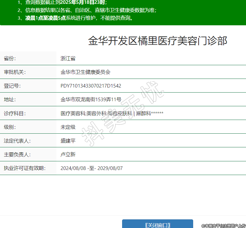 省份:浙江省審批機關:金華市衛(wèi)生健康委員會登記號:PDY71013433070217D1542地址:金華市雙龍南街1539弄11號診療科目:醫(yī)療美容科;美容外科;美容皮膚科 | 麻醉科******級別:未定級法定代表人:盛建平主要負責人:盧立新執(zhí)業(yè)許可證有效期:2024/08/08 -至- 2029/08/07 -