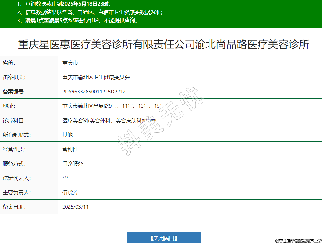 重慶星醫(yī)惠醫(yī)療美容診所有限責(zé)任公司渝北尚品路醫(yī)療美容診所