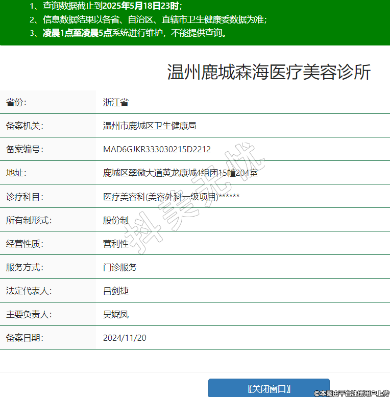 省份:浙江省備案機(jī)關(guān):溫州市鹿城區(qū)衛(wèi)生健康局備案編號(hào):MAD6GJKR333030215D2212地址:鹿城區(qū)翠微大道黃龍康城4組團(tuán)15幢204室診療科目:醫(yī)療美容科(美容外科一級(jí)項(xiàng)目)******所有制形式:股份制經(jīng)營性質(zhì):營利性服務(wù)方式:門診服務(wù)法定代表人:呂劍捷主要負(fù)責(zé)人:吳娓鳳備案日期:2024/11/20 -