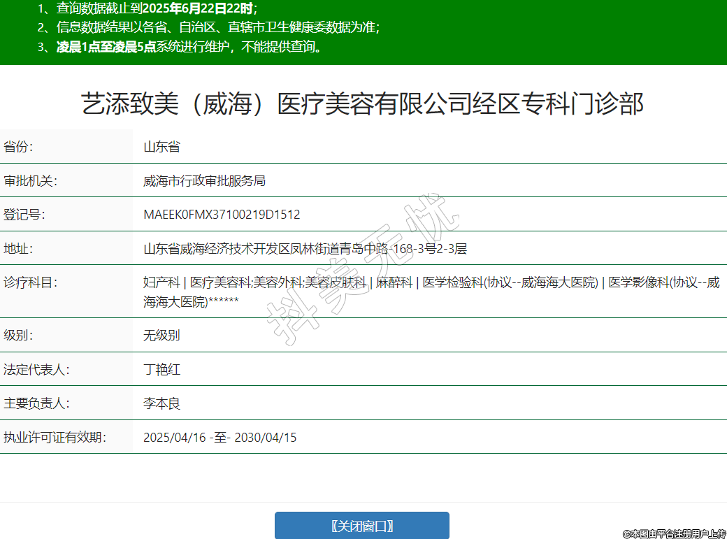 藝添致美(威海)醫(yī)療美容有限公司經(jīng)區(qū)專(zhuān)科門(mén)診部