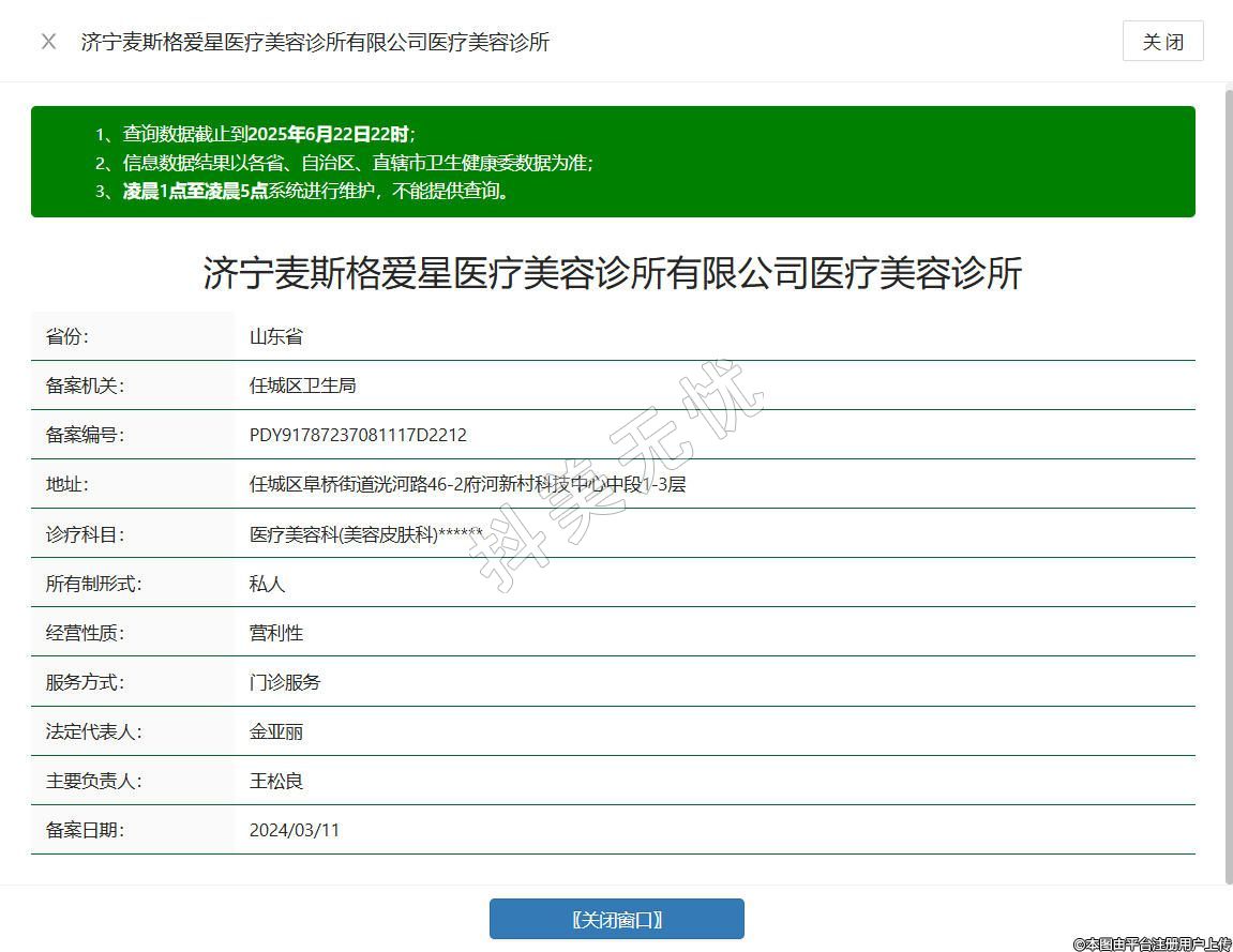 濟(jì)寧麥斯格愛(ài)星醫(yī)療美容診所有限公司醫(yī)療美容診所