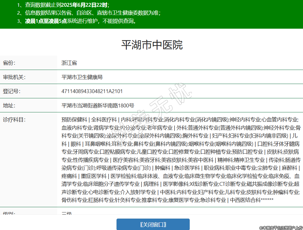 省份:浙江省審批機(jī)關(guān):平湖市衛(wèi)生健康局登記號:47114089433048211A2101地址:平湖市當(dāng)湖街道新華南路1800號診療科目:預(yù)防保健科 | 全科醫(yī)療科 | 內(nèi)科;呼吸內(nèi)科專業(yè);消化內(nèi)科專業(yè)(消化內(nèi)鏡四級);神經(jīng)內(nèi)科專業(yè);心血管內(nèi)科專業(yè);血液內(nèi)科專業(yè);腎病學(xué)專業(yè);內(nèi)分泌專業(yè);老年病專業(yè) | 外科;普通外科專業(yè)(普通外科內(nèi)鏡四級);神經(jīng)外科專業(yè);骨科專業(yè)(關(guān)節(jié)鏡四級);泌尿外科專業(yè)(泌尿外科內(nèi)鏡四級);胸外科專業(yè) | 婦產(chǎn)科;婦科專業(yè)(婦科內(nèi)鏡非四級) | 兒科 | 眼科 | 耳鼻咽喉科;耳科專業(yè);鼻科專業(yè)(鼻科內(nèi)鏡四級);咽喉科專業(yè)(咽喉科內(nèi)鏡四級) | 口腔科;牙體牙髓病專業(yè);牙周病專業(yè);口腔粘膜病專業(yè);兒童口腔專業(yè);口腔修復(fù)專業(yè);口腔種植專業(yè);預(yù)防口腔專業(yè) | 皮膚科;皮膚病專業(yè);性傳播疾病專業(yè) | 醫(yī)療美容科;美容牙科;美容皮膚科;美容中醫(yī)科 | 精神科;精神衛(wèi)生專業(yè) | 傳染科;腸道傳染病專業(yè)(門診);呼吸道傳染病專業(yè)(門診) | 腫瘤科 | 急診醫(yī)學(xué)科 | 職業(yè)病科;職業(yè)中毒專業(yè);塵肺專業(yè) | 麻醉科 | 疼痛科 | 重癥醫(yī)學(xué)科 | 醫(yī)學(xué)檢驗科;臨床體液、血液專業(yè);臨床微生物學(xué)專業(yè);臨床化學(xué)檢驗專業(yè);臨床免疫、血清學(xué)專業(yè);臨床細(xì)胞分子遺傳學(xué)專業(yè) | 病理科 | 醫(yī)學(xué)影像科;X線診斷專業(yè);CT診斷專業(yè);磁共振成像診斷專業(yè);超聲診斷專業(yè);心電診斷專業(yè);介入放射學(xué)專業(yè) | 中醫(yī)科;內(nèi)科專業(yè);婦產(chǎn)科專業(yè);兒科專業(yè);皮膚科專業(yè);腫瘤科專業(yè);骨傷科專業(yè);肛腸科專業(yè);針灸科專業(yè);推拿科專業(yè);康復(fù)醫(yī)學(xué)專業(yè);急診科專業(yè) | 中西醫(yī)結(jié)合科******級別:三級法定代表人:吳勇彬主要負(fù)責(zé)人:吳勇彬執(zhí)業(yè)許可證有效期:2024/02/05 -至- 2027/02/04 -
