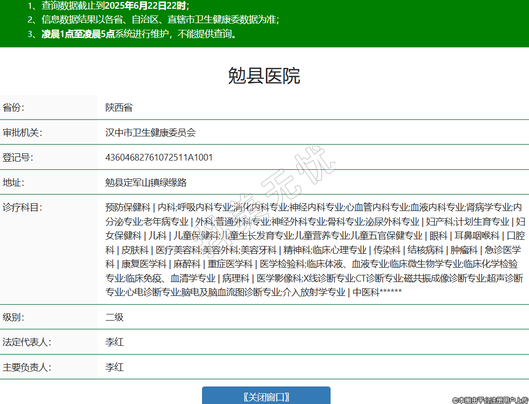 省份:陜西省審批機(jī)關(guān):漢中市衛(wèi)生健康委員會登記號:43604682761072511A1001地址:勉縣定軍山鎮(zhèn)綠緣路診療科目:預(yù)防保健科 | 內(nèi)科;呼吸內(nèi)科專業(yè);消化內(nèi)科專業(yè);神經(jīng)內(nèi)科專業(yè);心血管內(nèi)科專業(yè);血液內(nèi)科專業(yè);腎病學(xué)專業(yè);內(nèi)分泌專業(yè);老年病專業(yè) | 外科;普通外科專業(yè);神經(jīng)外科專業(yè);骨科專業(yè);泌尿外科專業(yè) | 婦產(chǎn)科;計劃生育專業(yè) | 婦女保健科 | 兒科 | 兒童保健科;兒童生長發(fā)育專業(yè);兒童營養(yǎng)專業(yè);兒童五官保健專業(yè) | 眼科 | 耳鼻咽喉科 | 口腔科 | 皮膚科 | 醫(yī)療美容科;美容外科;美容牙科 | 精神科;臨床心理專業(yè) | 傳染科 | 結(jié)核病科 | 腫瘤科 | 急診醫(yī)學(xué)科 | 康復(fù)醫(yī)學(xué)科 | 麻醉科 | 重癥醫(yī)學(xué)科 | 醫(yī)學(xué)檢驗科;臨床體液、血液專業(yè);臨床微生物學(xué)專業(yè);臨床化學(xué)檢驗專業(yè);臨床免疫、血清學(xué)專業(yè) | 病理科 | 醫(yī)學(xué)影像科;X線診斷專業(yè);CT診斷專業(yè);磁共振成像診斷專業(yè);超聲診斷專業(yè);心電診斷專業(yè);腦電及腦血流圖診斷專業(yè);介入放射學(xué)專業(yè) | 中醫(yī)科******級別:二級法定代表人:李紅主要負(fù)責(zé)人:李紅執(zhí)業(yè)許可證有效期:2022/12/09 -至- 2027/12/08 -