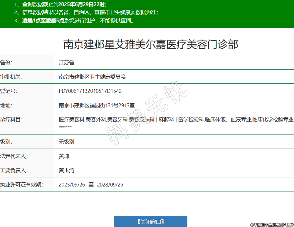 南京建鄴星艾雅美爾嘉醫(yī)療美容門診部,診療科目:醫(yī)療美容科;美容外科;美容牙科;美容皮膚科 | 麻醉科 | 醫(yī)學(xué)檢驗科;臨床體液、血液專業(yè);臨床化學(xué)檢驗專業(yè)******