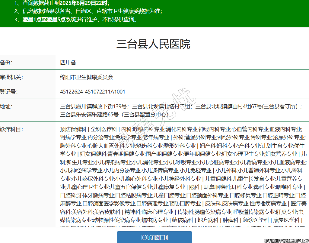 省份:四川省審批機(jī)關(guān):綿陽市衛(wèi)生健康委員會(huì)登記號(hào):45122624-451072211A1001地址:三臺(tái)縣潼川鎮(zhèn)解放下街139號(hào);三臺(tái)縣北壩鎮(zhèn)北塔村二組;三臺(tái)縣北壩鎮(zhèn)旗山村4組67號(hào)(三臺(tái)縣看守所);三臺(tái)縣樂安鎮(zhèn)樂建路65號(hào)(三臺(tái)縣留置分中心)診療科目:預(yù)防保健科 | 全科醫(yī)療科 | 內(nèi)科;呼吸內(nèi)科專業(yè);消化內(nèi)科專業(yè);神經(jīng)內(nèi)科專業(yè);心血管內(nèi)科專業(yè);血液內(nèi)科專業(yè);腎病學(xué)專業(yè);內(nèi)分泌專業(yè);免疫學(xué)專業(yè);老年病專業(yè) | 外科;普通外科專業(yè);神經(jīng)外科專業(yè);骨科專業(yè);泌尿外科專業(yè);胸外科專業(yè);心臟大血管外科專業(yè);燒傷科專業(yè);整形外科專業(yè) | 婦產(chǎn)科;婦科專業(yè);產(chǎn)科專業(yè);計(jì)劃生育專業(yè);優(yōu)生學(xué)專業(yè) | 婦女保健科;青春期保健專業(yè);圍產(chǎn)期保健專業(yè);更年期保健專業(yè);婦女心理衛(wèi)生專業(yè);婦女營養(yǎng)專業(yè) | 兒科;新生兒專業(yè);小兒傳染病專業(yè);小兒消化專業(yè);小兒呼吸專業(yè);小兒心臟病專業(yè);小兒腎病專業(yè);小兒血液病專業(yè);小兒神經(jīng)病學(xué)專業(yè);小兒內(nèi)分泌專業(yè);小兒遺傳病專業(yè);小兒免疫專業(yè) | 小兒外科;小兒普通外科專業(yè);小兒骨科專業(yè);小兒泌尿外科專業(yè);小兒胸心外科專業(yè);小兒神經(jīng)外科專業(yè) | 兒童保健科;兒童生長發(fā)育專業(yè);兒童營養(yǎng)專業(yè);兒童心理衛(wèi)生專業(yè);兒童五官保健專業(yè);兒童康復(fù)專業(yè) | 眼科 | 耳鼻咽喉科;耳科專業(yè);鼻科專業(yè);咽喉科專業(yè) | 口腔科;牙體牙髓病專業(yè);口腔粘膜病專業(yè);兒童口腔專業(yè);口腔頜面外科專業(yè);口腔修復(fù)專業(yè);口腔正畸專業(yè);口腔麻醉專業(yè);口腔頜面醫(yī)學(xué)影像專業(yè);口腔病理專業(yè);預(yù)防口腔專業(yè) | 皮膚科;皮膚病專業(yè);性傳播疾病專業(yè) | 醫(yī)療美容科;美容外科;美容皮膚科 | 精神科;臨床心理專業(yè) | 傳染科;腸道傳染病專業(yè);呼吸道傳染病專業(yè);肝炎專業(yè);蟲媒傳染病專業(yè);動(dòng)物源性傳染病專業(yè);蠕蟲病專業(yè) | 結(jié)核病科 | 地方病科 | 腫瘤科 | 急診醫(yī)學(xué)科 | 康復(fù)醫(yī)學(xué)科 | 運(yùn)動(dòng)醫(yī)學(xué)科 | 臨終關(guān)懷科 | 麻醉科 | 疼痛科 | 重癥醫(yī)學(xué)科 | 醫(yī)學(xué)檢驗(yàn)科;臨床體液、血液專業(yè);臨床微生物學(xué)專業(yè);臨床化學(xué)檢驗(yàn)專業(yè);臨床免疫、血清學(xué)專業(yè);臨床細(xì)胞分子遺傳學(xué)專業(yè) | 病理科 | 醫(yī)學(xué)影像科;X線診斷專業(yè);CT診斷專業(yè);磁共振成像診斷專業(yè);超聲診斷專業(yè);心電診斷專業(yè);腦電及腦血流圖診斷專業(yè);神經(jīng)肌肉電圖專業(yè);介入放射學(xué)專業(yè);放射治療專業(yè) | 中醫(yī)科;內(nèi)科專業(yè);外科專業(yè);婦產(chǎn)科專業(yè);兒科專業(yè);皮膚科專業(yè);眼科專業(yè);耳鼻咽喉科專業(yè);口腔科專業(yè);腫瘤科專業(yè);骨傷科專業(yè);肛腸科專業(yè);老年病科專業(yè);針灸科專業(yè);推拿科專業(yè);康復(fù)醫(yī)學(xué)專業(yè);急診科專業(yè);預(yù)防保健科專業(yè) | 中西醫(yī)結(jié)合科******法定代表人:周立遠(yuǎn)主要負(fù)責(zé)人:周立遠(yuǎn)執(zhí)業(yè)許可證有效期:2025/03/26 -至- 2039/04/29 -