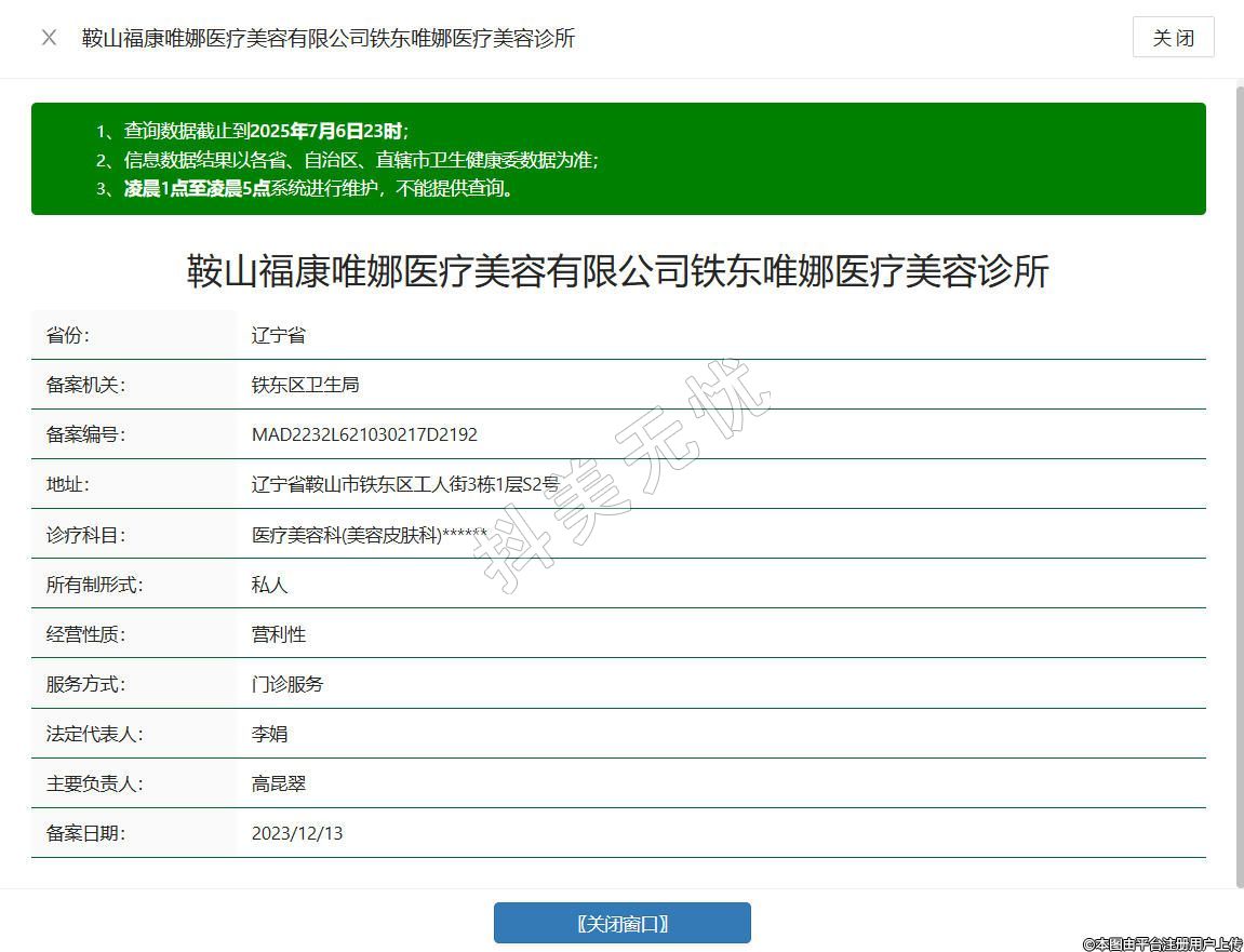鞍山??滴柔t(yī)療美容有限公司鐵東唯娜醫(yī)療美容診所