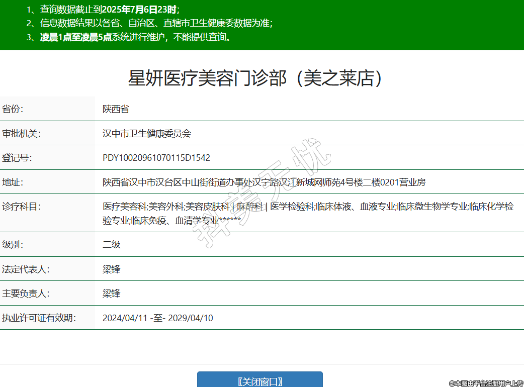 漢中星妍醫(yī)療美容(美之萊店)診療科目:醫(yī)療美容科;美容外科;美容皮膚科 | 麻醉科 | 醫(yī)學檢驗科;臨床體液、血液專業(yè);臨床微生物學專業(yè);臨床化學檢驗專業(yè);臨床免疫、血清學專業(yè)******