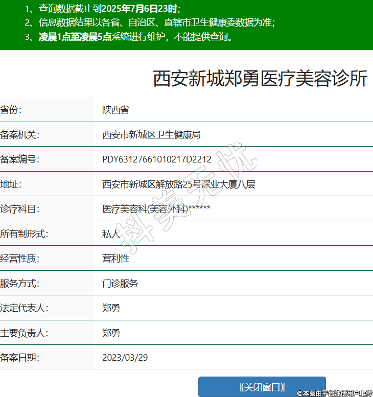 省份:陜西省備案機(jī)關(guān):西安市新城區(qū)衛(wèi)生健康局備案編號(hào):PDY63127661010217D2212地址:西安市新城區(qū)解放路25號(hào)深業(yè)大廈八層診療科目:醫(yī)療美容科(美容外科)******所有制形式:私人經(jīng)營(yíng)性質(zhì):營(yíng)利性服務(wù)方式:門診服務(wù)法定代表人:鄭勇主要負(fù)責(zé)人:鄭勇備案日期:2023/03/29 -