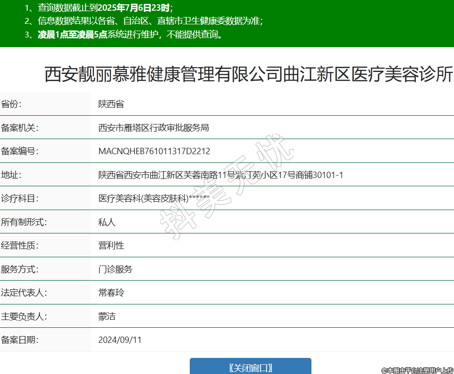 西安靚麗慕雅健康管理有限公司曲江新區(qū)醫(yī)療美容診所