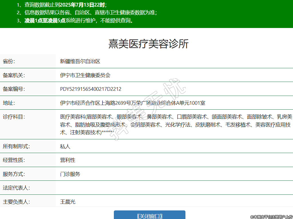 省份:新疆維吾爾自治區(qū)備案機(jī)關(guān):伊寧市衛(wèi)生健康委員會(huì)備案編號(hào):PDY52191565400217D2212地址:伊寧市經(jīng)濟(jì)合作區(qū)上海路2699號(hào)萬(wàn)榮廣場(chǎng)商業(yè)綜合體A單元1001室診療科目:醫(yī)療美容科(眉部美容術(shù)、眼部美容術(shù)、鼻部美容術(shù)、口唇部美容術(shù)、頜面部美容術(shù)、面部除皺術(shù)、乳房美容術(shù)、脂肪抽吸及腹壁成形術(shù)、會(huì)陰部美容術(shù)、光化學(xué)療法、皮膚磨削術(shù)、毛發(fā)移植術(shù)、美容醫(yī)療應(yīng)用技術(shù)、注射美容技術(shù))******所有制形式:私人經(jīng)營(yíng)性質(zhì):營(yíng)利性服務(wù)方式:門診服務(wù)法定代表人:主要負(fù)責(zé)人:王晨光備案日期:2024/10/08 -