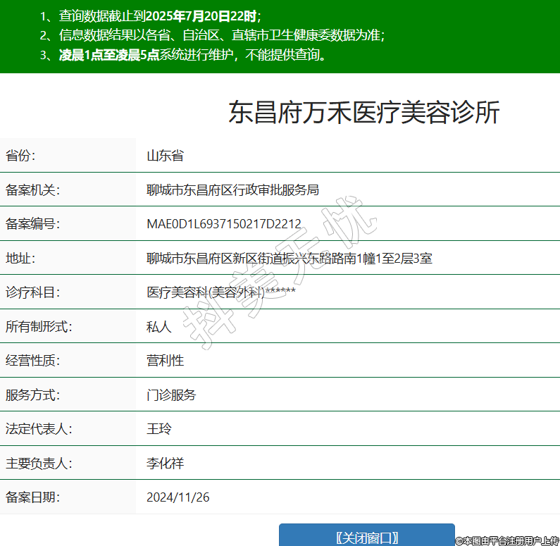 省份:山東省備案機關(guān):聊城市東昌府區(qū)行政審批服務(wù)局備案編號:MAE0D1L6937150217D2212地址:聊城市東昌府區(qū)新區(qū)街道振興東路路南1幢1至2層3室診療科目:醫(yī)療美容科(美容外科)******所有制形式:私人經(jīng)營性質(zhì):營利性服務(wù)方式:門診服務(wù)法定代表人:王玲主要負責(zé)人:李化祥備案日期:2024/11/26 -